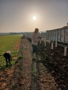 Enfin, cet hiver a aussi été marqué par un travail plus discret mais tout aussi important : la plantation de près de 800 mètres de haies. Des essences locales, choisies pour leur adaptation et leur rôle écologique. Ces haies viendront protéger les nouvelles structures du vent, mais aussi favoriser la biodiversité sur l’exploitation. Nous avons été accompagnés pour cela par l’association Prom’haie, dans le cadre du programme « 1000 palisses ».